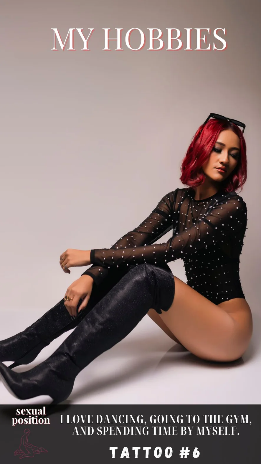 Tevepata, Dildó vagy vibrátor, Szexjátékok, Hardcore, Kézimunka, Orgazmus, Szerepjáték, Mocskos beszéd, Kutyapóz, Ahegao, Erotikus tánc, Fűző, Maszturbálás, Cici baszós, Nejlon, Magassarkú, Szájpecek, Nyilvános hely, Fenekelés, Farok értékelés, Bőr, Sztriptíz, Lábfétis, Szopás, Lovaglás, Twerk, Félmeztelen, Ujjazás, Olajozás